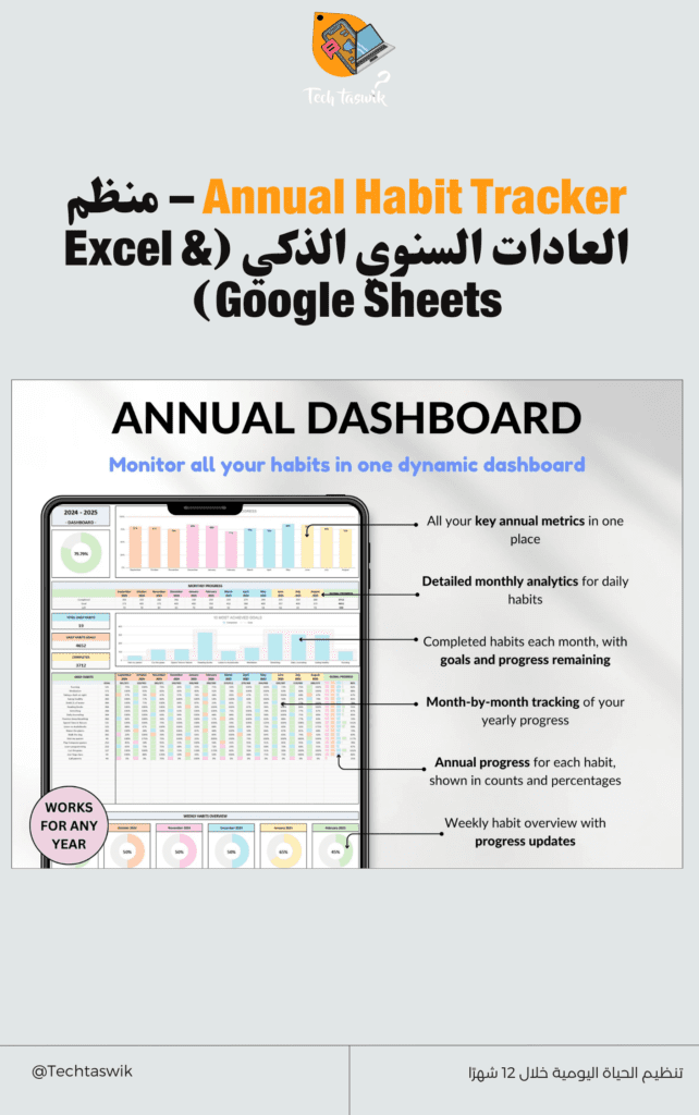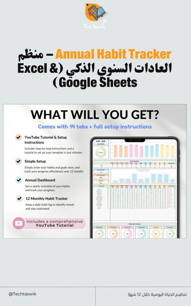 احصل الآن على جدول تتبع العادات اليومي Excel وPDF لتنظيم وقتك وتحقيق أهدافك!