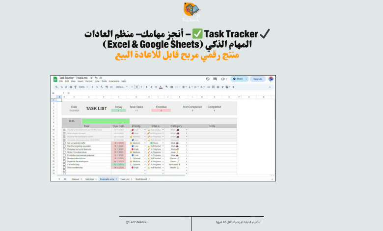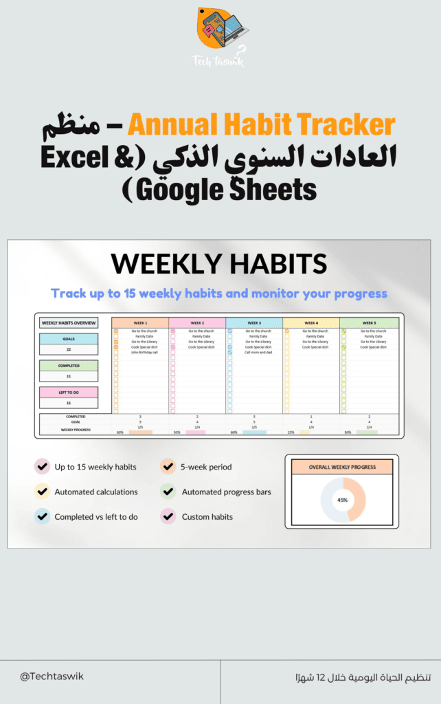 • Daily Habit Tracker وExcel Habit Tracker: لتقييم تقدمك بشكل دوري.