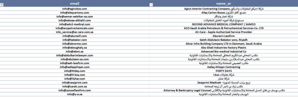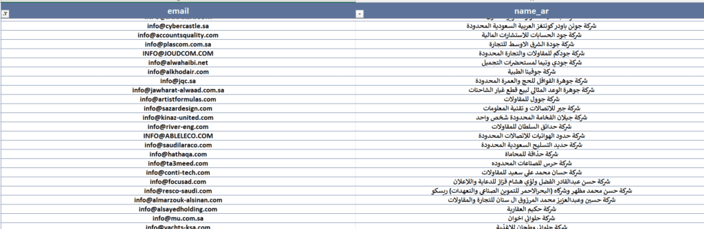 | داتا ايميلات وارقام شركات سعودية | داتا ارقام ايميلات عملاء للتسويق والمبيعات – قاعدة بيانات شركات سعودية | Excel | حمل من هنا |