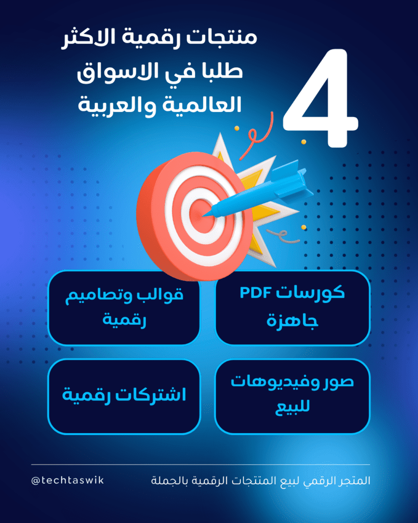 الكلمات المفتاحية المستخدمة: منتجات رقمية جاهزة، منتجات رقمية مربحة، منتجات رقمية مجانية PDF، Techtaswik، منتجات رقمية بالجملة، Pack منتجات رقمية، كورسات PDF جاهزة، صور وفيديوهات رقمية