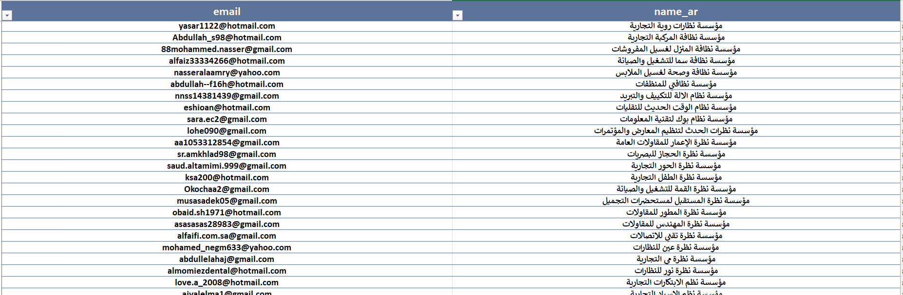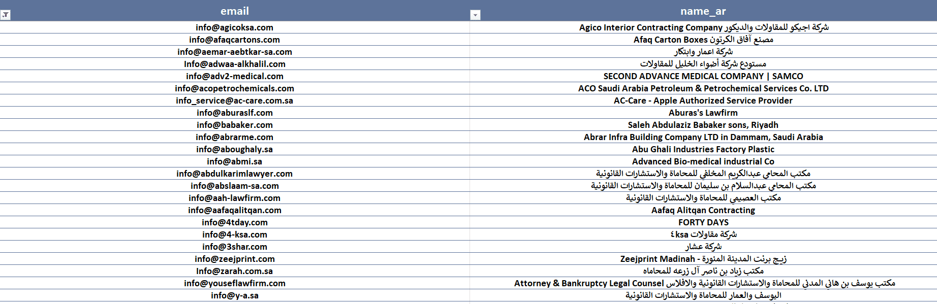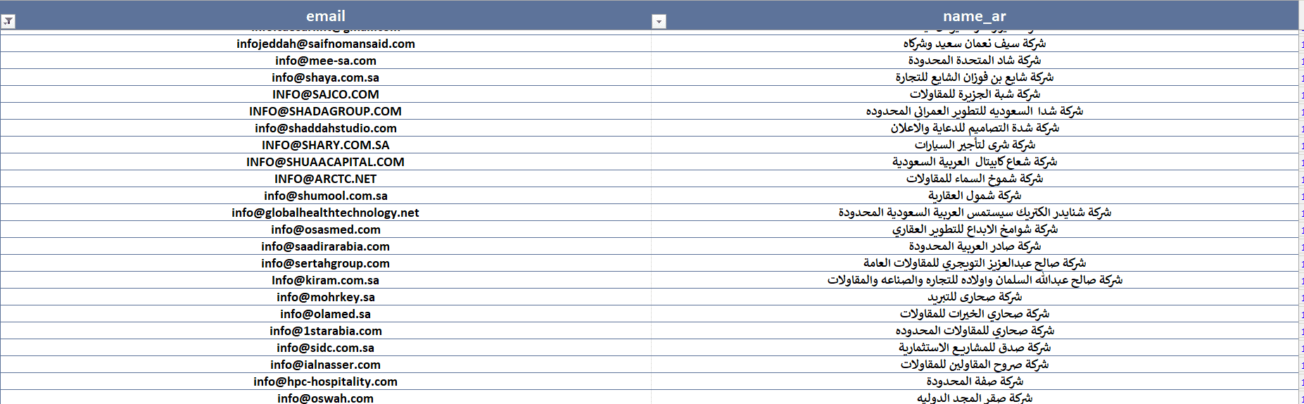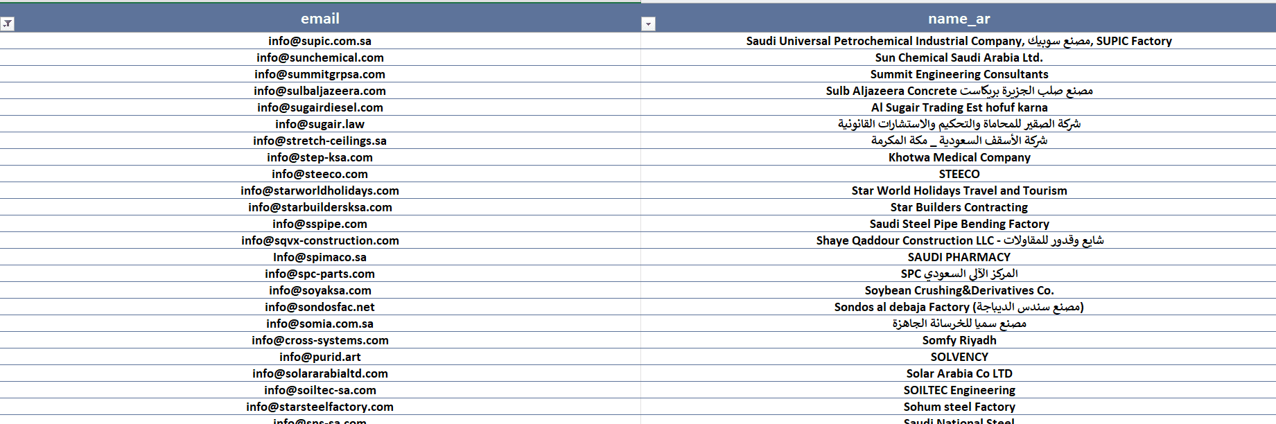قاعدة بيانات ايميلات شركات سعودية (ايميلات الشركات السعودية بجميع التخصصات محدثة لعام 2025)