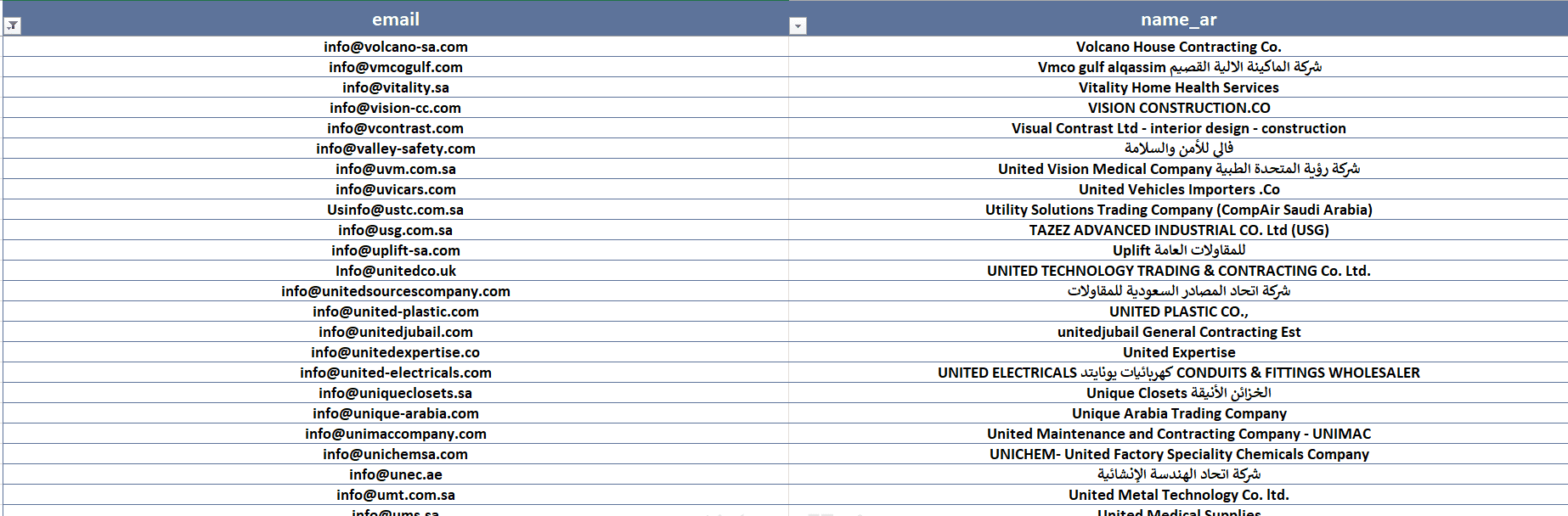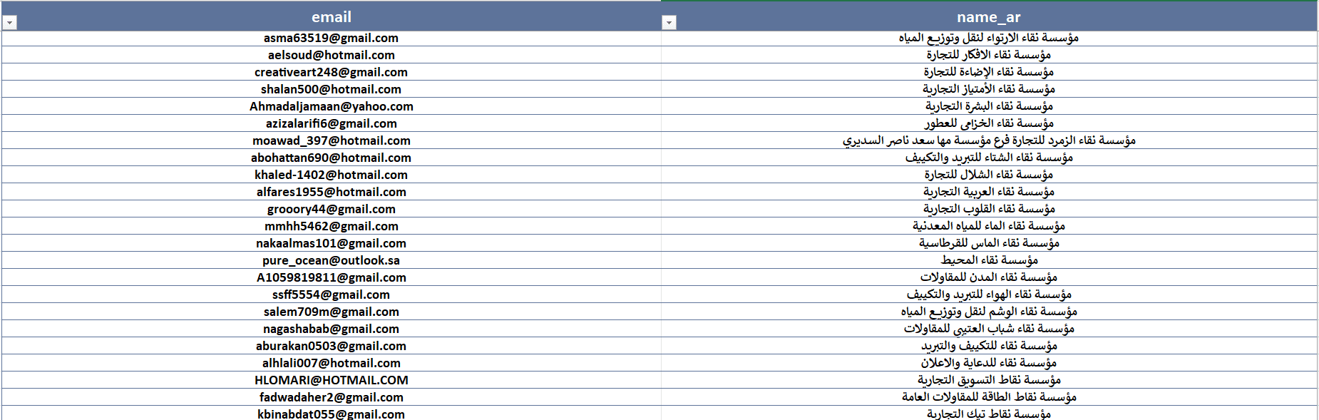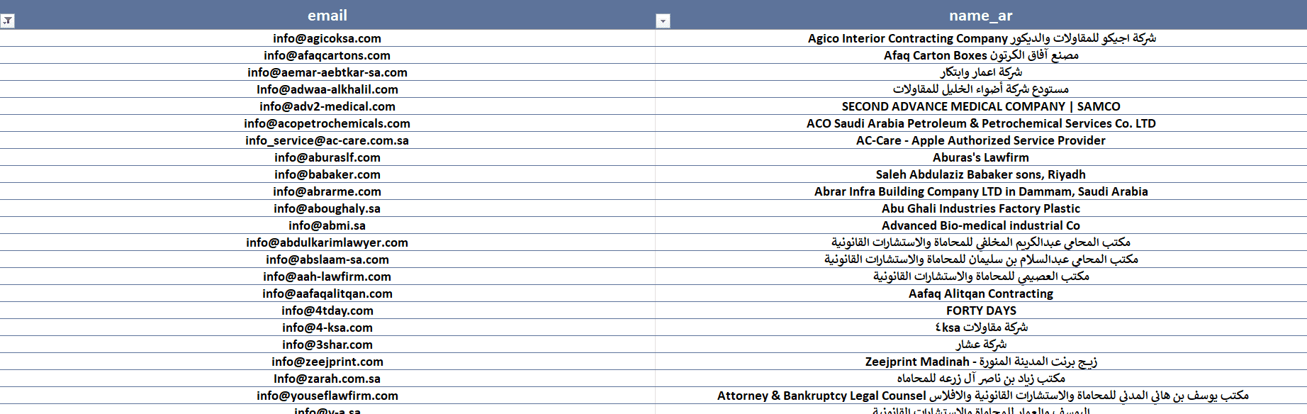 قاعدة بيانات ايميلات شركات سعودية (ايميلات الشركات السعودية بجميع التخصصات محدثة لعام 2025)