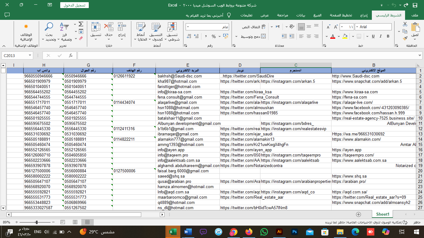 20 مليون قاعدة بيانات ايميلات وارقام شركات سعودية (داتا ارقام ايميلات عملاء للتسويق والمبيعات)