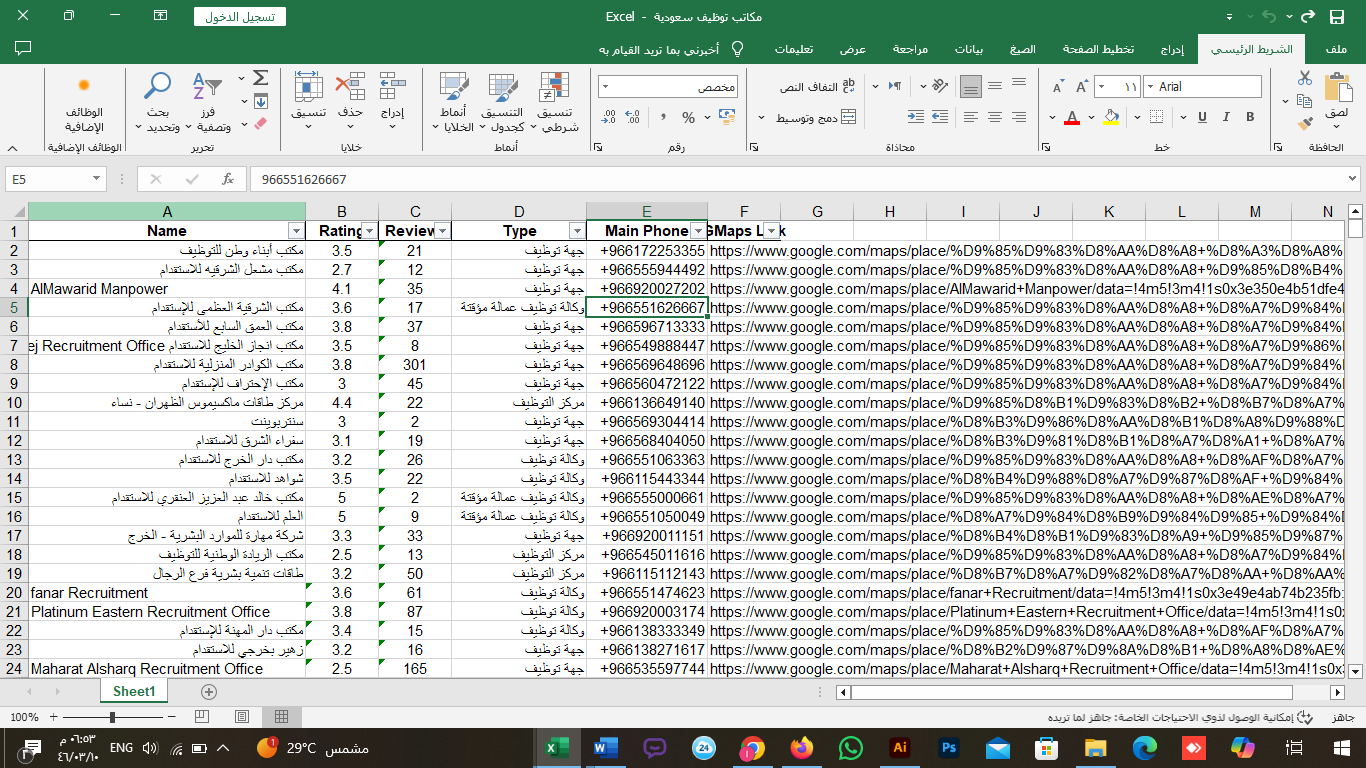 احصل على دليل الشركات السعودية xls، وداتا أرقام سعودية حديثة، مع قاعدة بيانات عملاء شاملة تحتوي على بيانات دقيقة لجميع القطاعات.